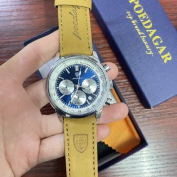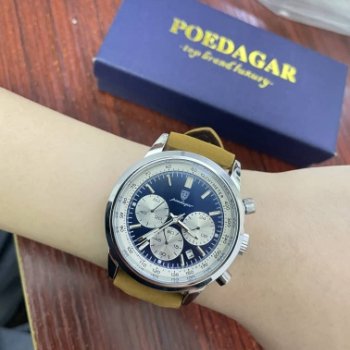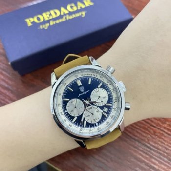 An absolute marvel of craftsmanship! This watch strikes a perfect balance between opulence and utility with its rich leather strap, precise chronograph function, and impressive waterproofing capabilities. And let's talk about those luminous hands – they add such a distinctive touch while ensuring visibility even in low-light situations.