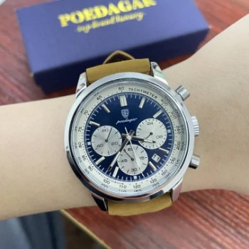 This chronograph watch is an absolute gem! The leather strap feels so luxurious and comfortable on my wrist. Plus, the waterproof feature gives me peace of mind during unexpected rain showers or when I'm washing dishes. It's a great blend of style and practicality.