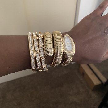 Wow! This watch is an absolute stunner. The snake wrap design is so unique and the rhinestones just add that extra sparkle. It's not only a timepiece, but also a piece of jewelry. I'm in love with it! 😍